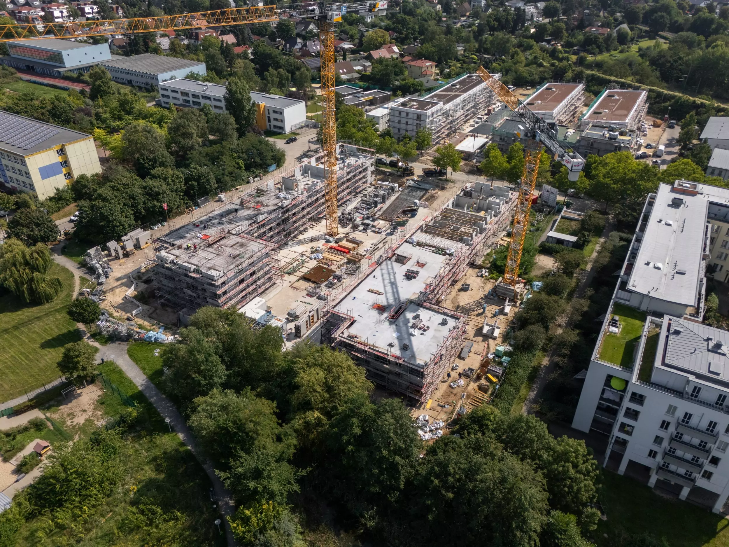 Die Unternehmensgruppe Glöckle setzt im Berliner Stadtteil Schönefeld als Generalunternehmer die beiden Quartiere „Cassiopeia“ und „Bellatrix“ um. Bis 2026 entstehen hier 483 moderne Wohnungen mit Tiefgaragen und großzügigen Grünflächen – ein wichtiger Beitrag zum dringend benötigten Wohnraum in der Region.