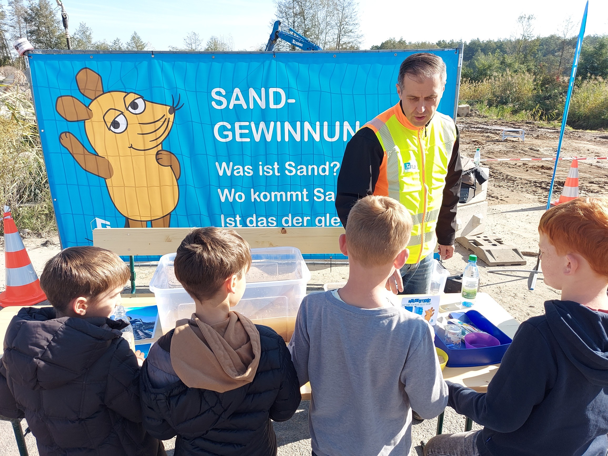 Spielerisch und mit viel Begeisterung erfuhren die jungen Besucherinnen und Besucher, wie Sand und Kies gewonnen werden und warum diese Rohstoffe eine so zentrale Rolle für das Bauen spielen. An verschiedenen Erlebnisstationen durften sie nicht nur zuschauen, sondern selbst aktiv werden: Vom Saugbagger, der Sand aus dem Boden fördert, über kleine Probefahrten mit Radlader und Bagger bis hin zur beliebten „Sandwäsche“, bei der Schätze im Sandkasten ausgegraben wurden. Zum Abschluss verwandelten sich viele Kinder in Nachwuchs-Baumeister, indem sie eigenen Beton anmischten und in Form gossen – eine Erinnerung, die sie mit nach Hause nehmen konnten.
